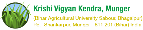 KrishiVigyan Kendra, Munger has been established in April,1979 according to sanction order 22(6)79 Edn. 11 dated 23.04.1979. It is the oldest KVK of RAU Pusain later of BAU Sabour Bhagalpur. It has been working with strength of six extensionists of different disciplines and associates. Main work of KVK is to disseminate the innovative technologies of agriculture and allied through on station or farm testing, front Line demonstrations, Training, gosthi, electronics media, direct interaction or with other means. Six extensionists and other incumbents KVK have been doing works on seed production, integrated farming, preparation of planting material, value addition, development of entrepreneurship, empowerment of women through skill development. Water management, live stock& cattle farming, Redgram, Wheat, Maize, Lentil, Gram, Rai, Vegetable & fruit cultivation.